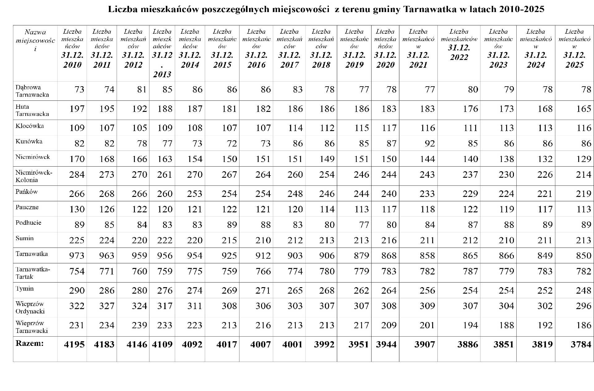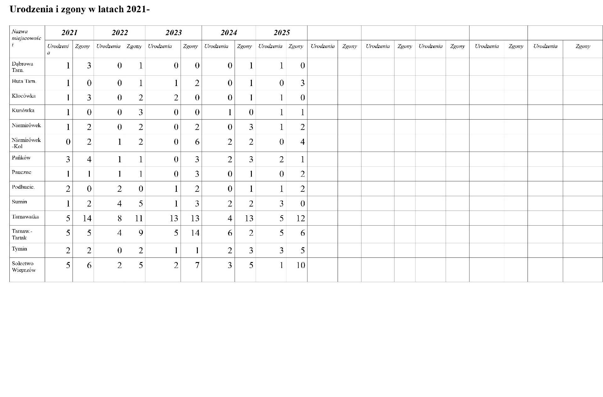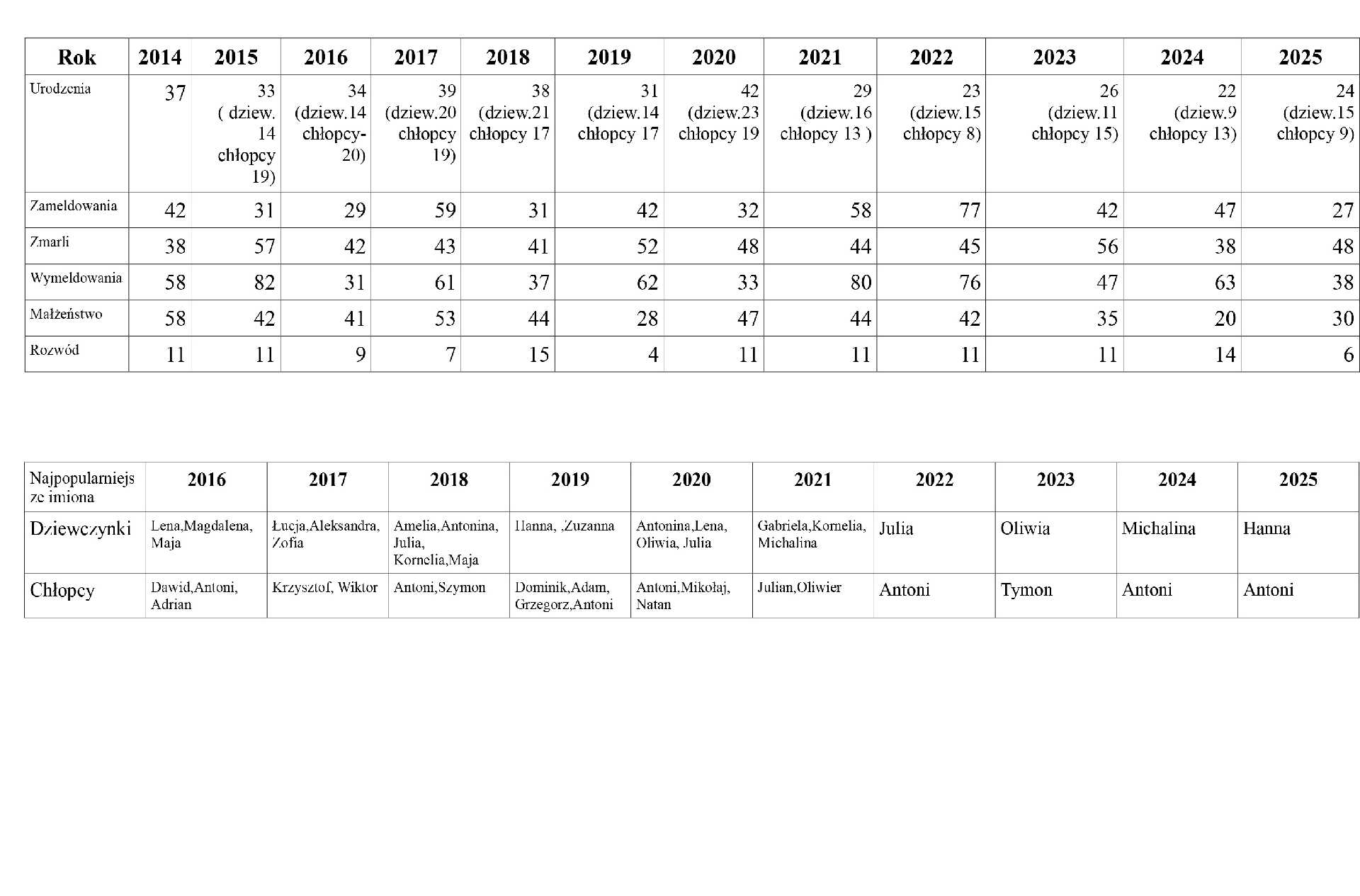 Wzorem lat ubiegłych prezentujemy dane demograficzne gminy na koniec 2025 roku w zestawieniu z latami wcześniejszymi.
