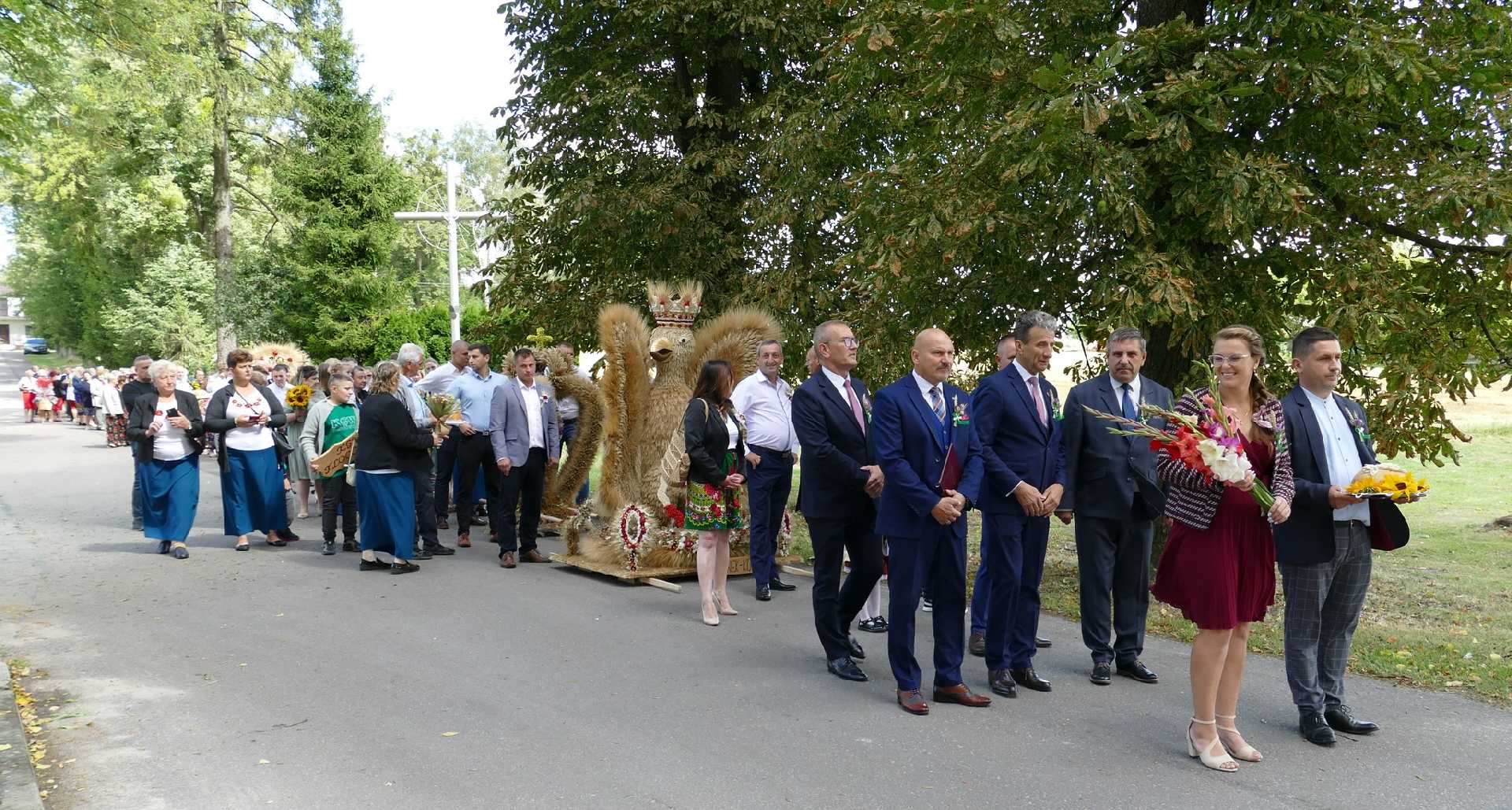 Sierpień był miesiącem, w którym dziękowaliśmy za zebrane plony, ale również, podążając za słowami Jana Pawła II "Oddaliśmy hołd spracowanym rękom polskiego rolnika. Tym rękom, które z trudnej ciężkiej ziemi wydobywały chleb dla kraju”. Uroczystości rozpoczęła dziękczynna Msza Święta, poprzedzona barwnym korowodem, który prowadzili starostowie dożynek: Pani Natalia Adamczuk z Paucznego i Pan Grzegorz Kuśmierz z Klocówki. Przekazali oni na ręce Pana Wójta Piotra Pasiecznego chleb wypieczony z tegorocznych zbiorów, którym symbolicznie podzielono się z mieszkańcami.